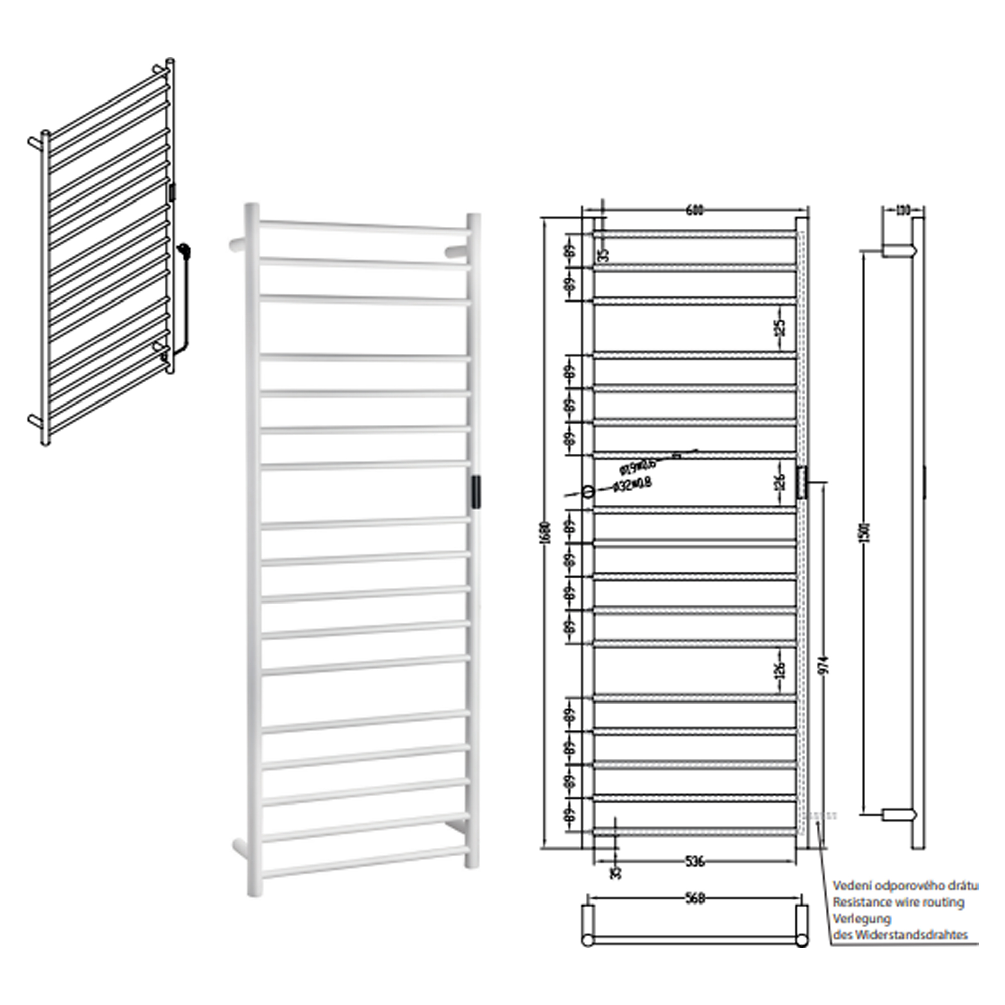 El Håndklædetørrer 285 W Svalin Hvid Mat