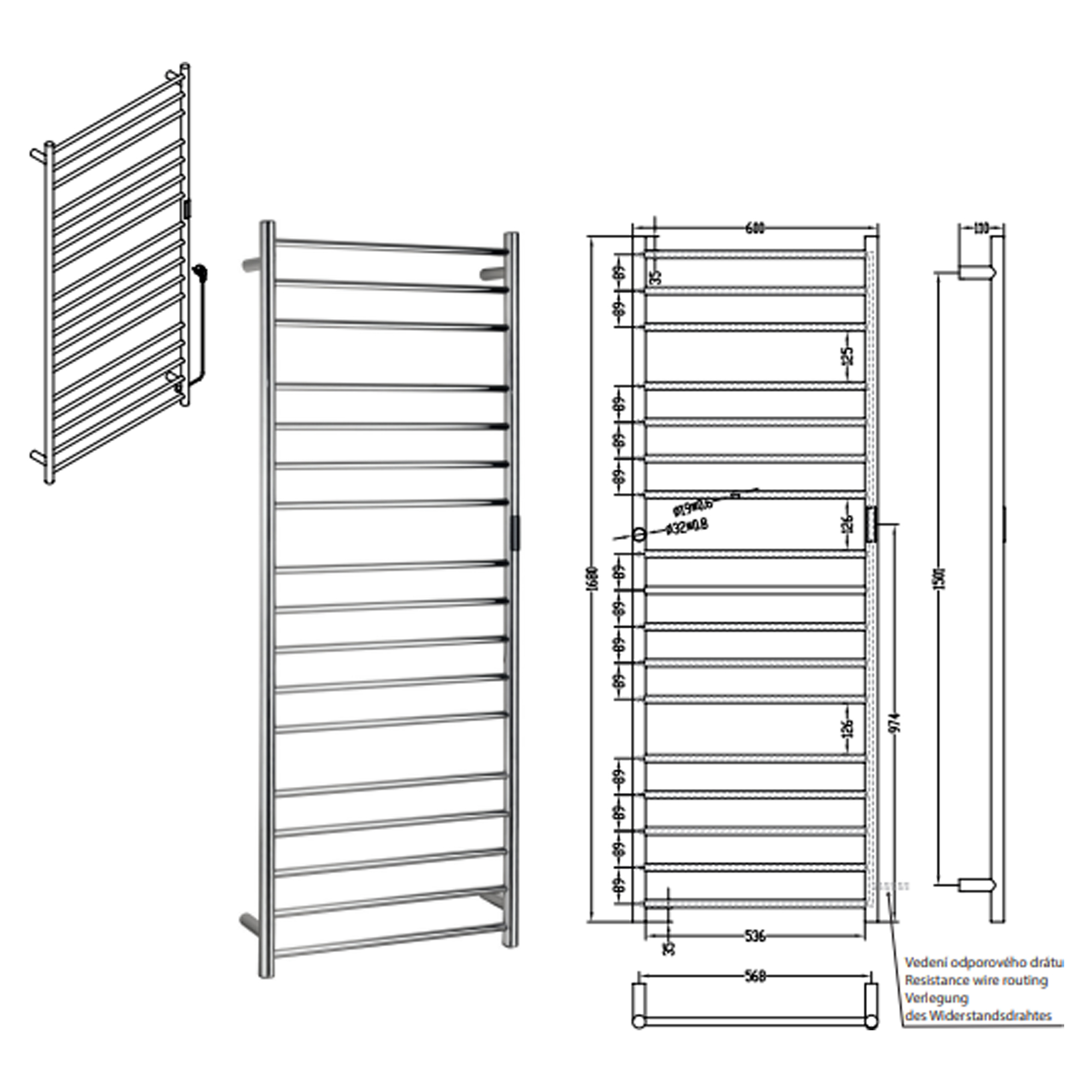 Anslutningstyp: handdukstorken är utrustad med anslutningskabel med stickkontakt för eluttag samt med reducering för fast anslutning till väggens elinstallation.