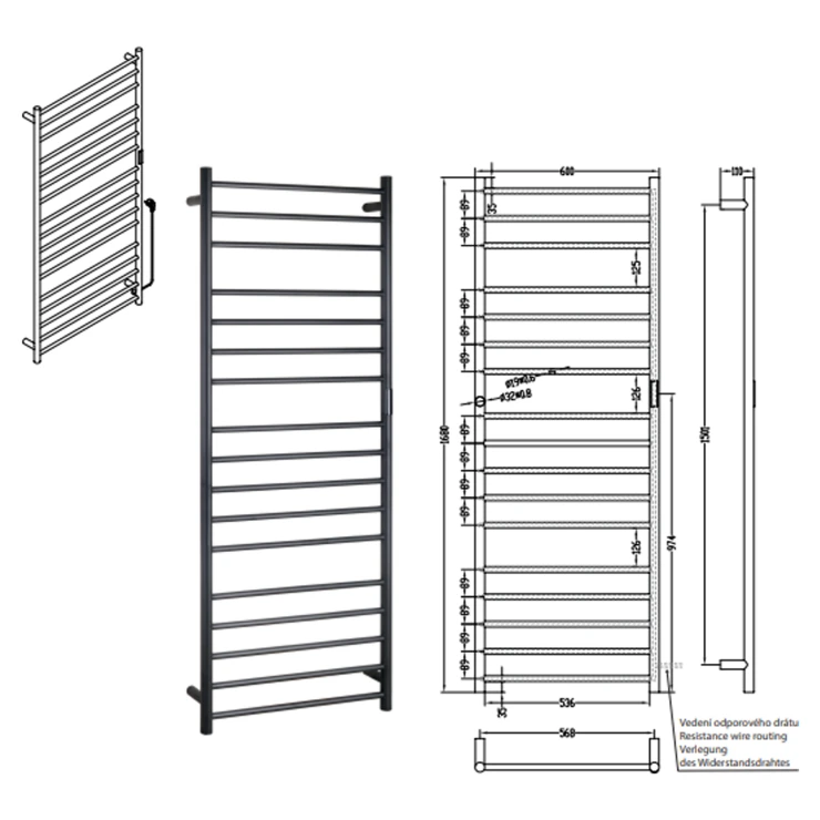 Anslutningstyp: handdukstorken är utrustad med anslutningskabel med stickkontakt för eluttag samt med reducering för fast anslutning till väggens elinstallation.