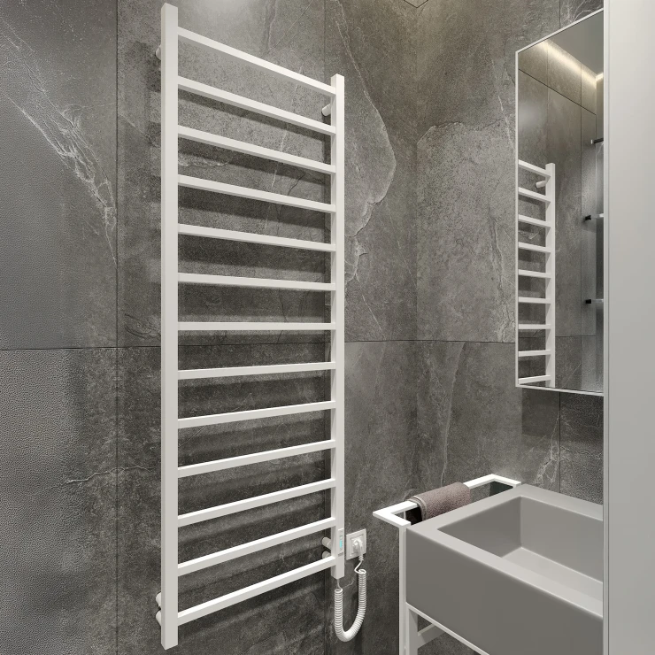 I tråd med globale trends inden for badeværelsesdesign præsenterer vi denne elektriske håndklædetørrer i mat sort udførelse. Et perfekt designvalg for kunder, der værdsætter industrielle farvetoner, minimalistisk æstetik og rene metalformer.