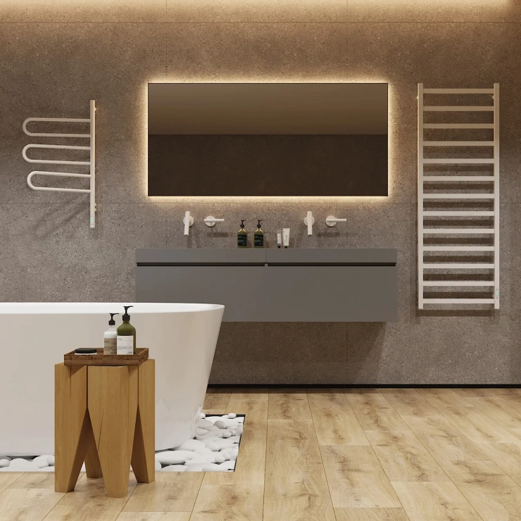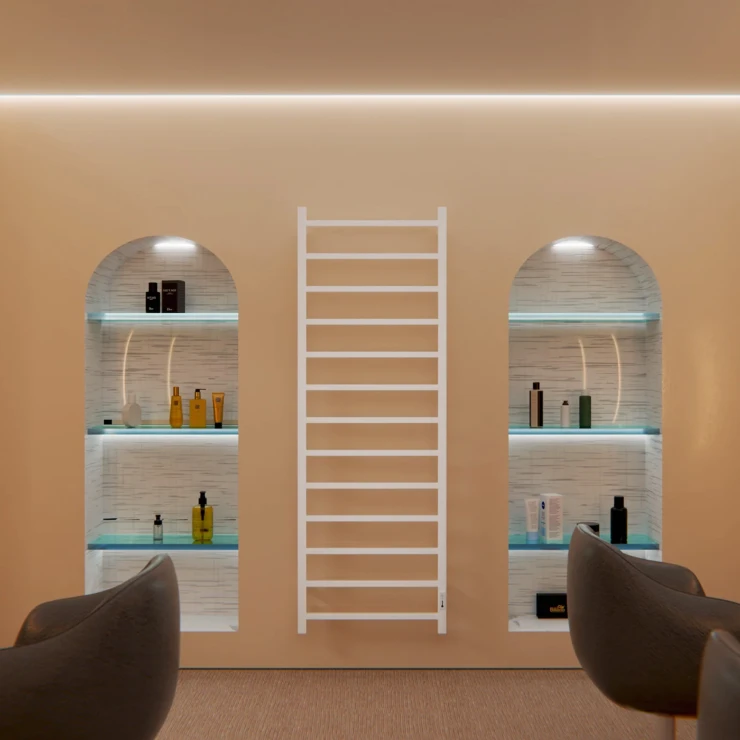 I tråd med globale trends inden for badeværelsesdesign præsenterer vi denne elektriske håndklædetørrer i mat sort udførelse. Et perfekt designvalg for kunder, der værdsætter industrielle farvetoner, minimalistisk æstetik og rene metalformer.