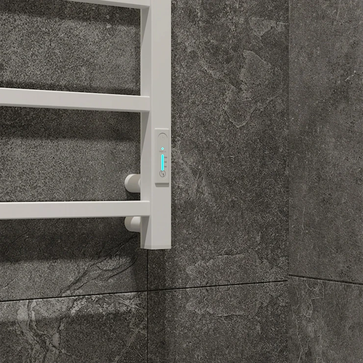 Den elektriske håndklædetørrer er udstyret med en temperaturregulator med tre varmetilstande samt en indbygget timerfunktion. I TIMER 3H-tilstand slukker enheden automatisk efter tre timer, hvilket giver øget sikkerhed og energieffektivitet. Dette energieffektive badeværelsesprodukt forbruger meget lidt strøm og kan reducere det månedlige energiforbrug med op til 70 %.