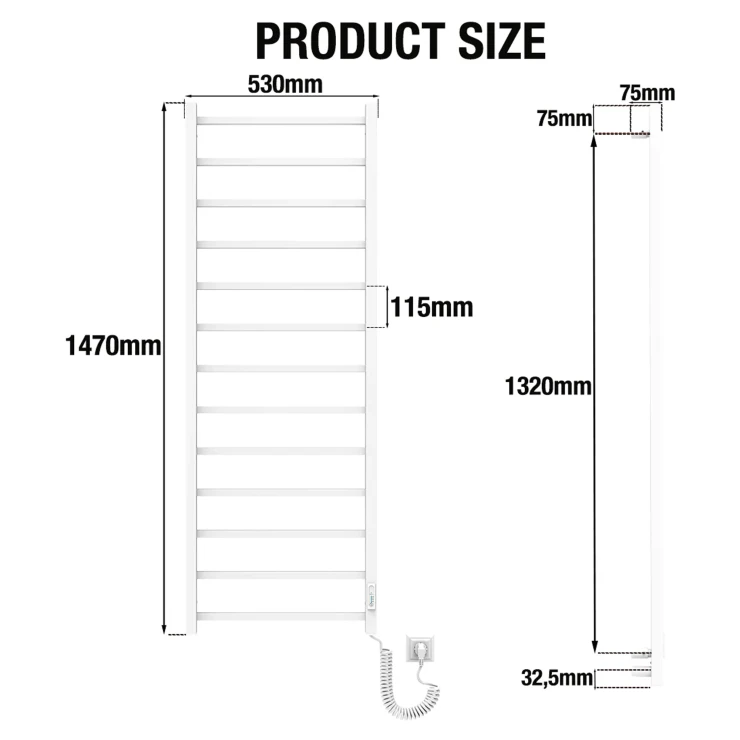 Denne elektriske håndklædetørrer er designet til høj komfort og nem anvendelse. Den kan tilsluttes hvor som helst, der er adgang til strøm. Takket være et tørt internt varmesystem kræves ingen væsker – det er bare at tilslutte og begynde at bruge. Håndklædetørreren varmes hurtigt op og når sin maksimale temperatur inden for få minutter.