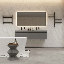 I tråd med globale trends inden for badeværelsesdesign præsenterer vi denne elektriske håndklædetørrer i mat sort udførelse. Et perfekt designvalg for kunder, der værdsætter industrielle farvetoner, minimalistisk æstetik og rene metalformer.