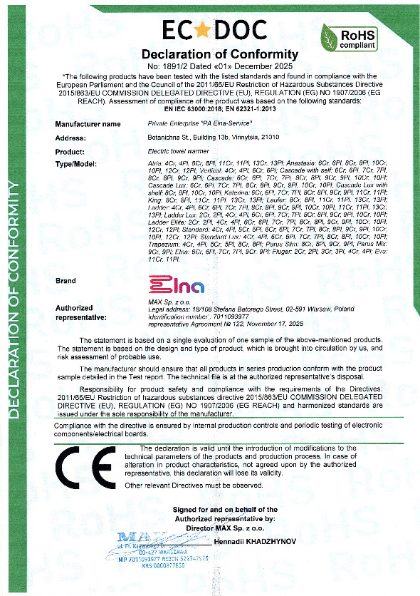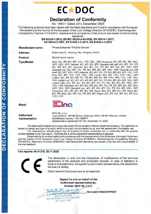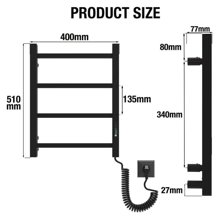Denne elektriske håndklædetørrer er designet til høj komfort og nem anvendelse. Den kan tilsluttes hvor som helst, der er adgang til strøm. Takket være et tørt internt varmesystem kræves ingen væsker – det er bare at tilslutte og begynde at bruge. Håndklædetørreren varmes hurtigt op og når sin maksimale temperatur inden for få minutter.