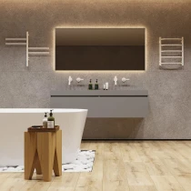 Den elektriske håndklædetørrer er udstyret med en temperaturregulator med tre varmetilstande samt en indbygget timerfunktion. I TIMER 3H-tilstand slukker enheden automatisk efter tre timer, hvilket giver øget sikkerhed og energieffektivitet. Dette energieffektive badeværelsesprodukt forbruger meget lidt strøm og kan reducere det månedlige energiforbrug med op til 70 %.