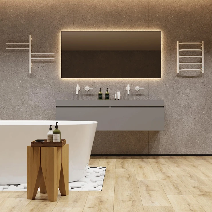 I tråd med globale trends inden for badeværelsesdesign præsenterer vi denne elektriske håndklædetørrer i mat sort udførelse. Et perfekt designvalg for kunder, der værdsætter industrielle farvetoner, minimalistisk æstetik og rene metalformer.