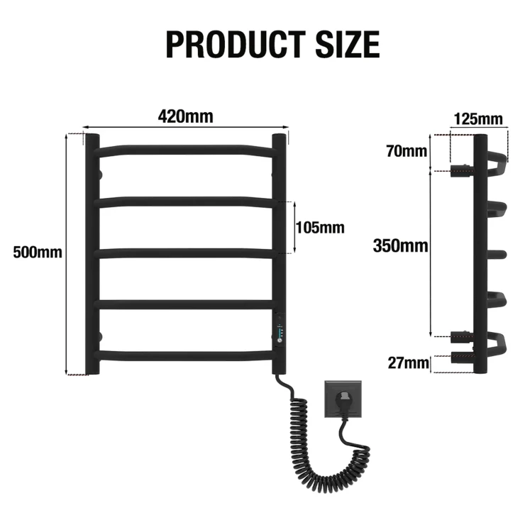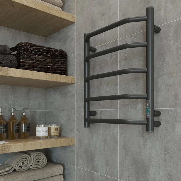 I tråd med globale trends inden for badeværelsesdesign præsenterer vi denne elektriske håndklædetørrer i mat sort udførelse. Et perfekt designvalg for kunder, der værdsætter industrielle farvetoner, minimalistisk æstetik og rene metalformer.