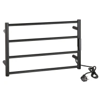 För mindre utrymmen är våra kompakta uppvärmda handdukstorkar i storleken 560 × 90 × 370 mm ett perfekt val. De finns i flera färger samt i både blank och matt finish. Dessa designade handdukstorkar torkar dina handdukar effektivt och tillför samtidigt ett modernt uttryck till badrummet. De kan antingen anslutas direkt till ett eluttag eller integreras diskret i väggen med hjälp av en adapter, vilket ger en flexibel och stilren installation.