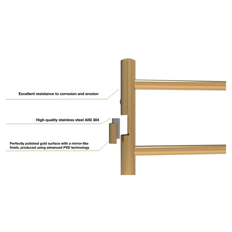 Denne elektriske håndklædetørrer er designet til høj komfort og nem anvendelse. Den kan tilsluttes hvor som helst, der er adgang til strøm. Takket være et tørt internt varmesystem kræves ingen væsker – det er bare at tilslutte og begynde at bruge. Håndklædetørreren varmes hurtigt op og når sin maksimale temperatur inden for få minutter.