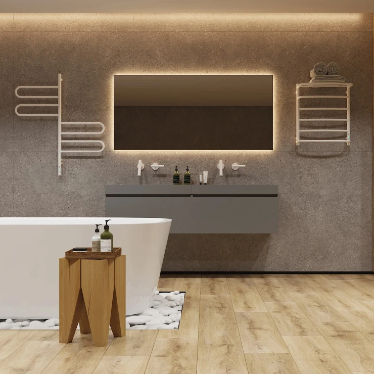 For fleksibel installation kan strømkablet tilsluttes på enten venstre eller højre side, afhængigt af hvor stikkontakten er placeret i badeværelset. Dette indgår i standardmonteringssættet og muliggør en nem og selvstændig montering. Ved badeværelsesrenovering er der også mulighed for skjult elinstallation, hvilket giver et rent og stilfuldt indtryk uden synlige kabler.