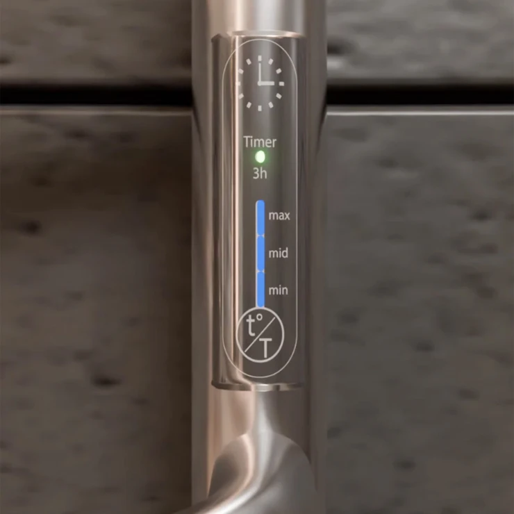 Den elektriske håndklædetørrer er udstyret med en temperaturregulator med tre varmetilstande samt en indbygget timerfunktion. I TIMER 3H-tilstand slukker enheden automatisk efter tre timer, hvilket giver øget sikkerhed og energieffektivitet. Dette energieffektive badeværelsesprodukt forbruger meget lidt strøm og kan reducere det månedlige energiforbrug med op til 70 %.