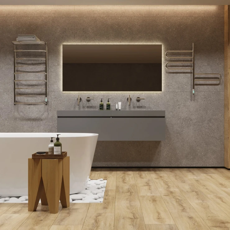 I tråd med globale trends inden for badeværelsesdesign præsenterer vi denne elektriske håndklædetørrer i mat sort udførelse. Et perfekt designvalg for kunder, der værdsætter industrielle farvetoner, minimalistisk æstetik og rene metalformer.