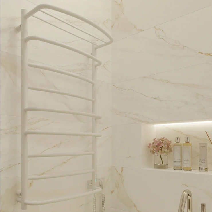 Denne elektriske håndklædetørrer er designet til høj komfort og nem anvendelse. Den kan tilsluttes hvor som helst, der er adgang til strøm. Takket være et tørt internt varmesystem kræves ingen væsker – det er bare at tilslutte og begynde at bruge. Håndklædetørreren varmes hurtigt op og når sin maksimale temperatur inden for få minutter.