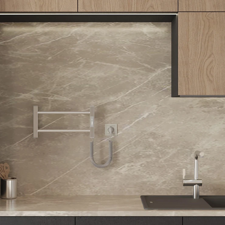 Denne elektriske håndklædetørrer er designet til høj komfort og nem anvendelse. Den kan tilsluttes hvor som helst, der er adgang til strøm. Takket være et tørt internt varmesystem kræves ingen væsker – det er bare at tilslutte og begynde at bruge. Håndklædetørreren varmes hurtigt op og når sin maksimale temperatur inden for få minutter.