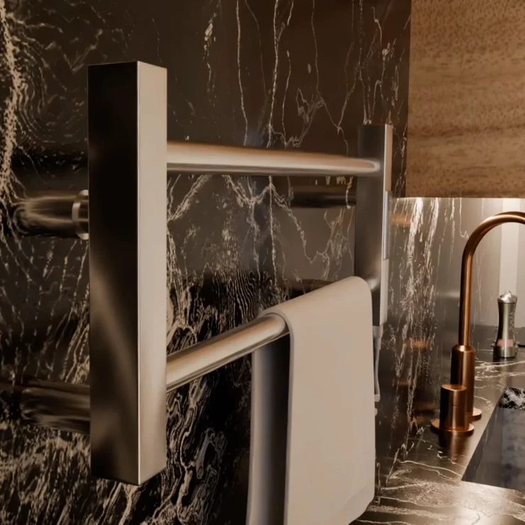 I tråd med globale trends inden for badeværelsesdesign præsenterer vi denne elektriske håndklædetørrer i mat sort udførelse. Et perfekt designvalg for kunder, der værdsætter industrielle farvetoner, minimalistisk æstetik og rene metalformer.