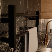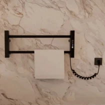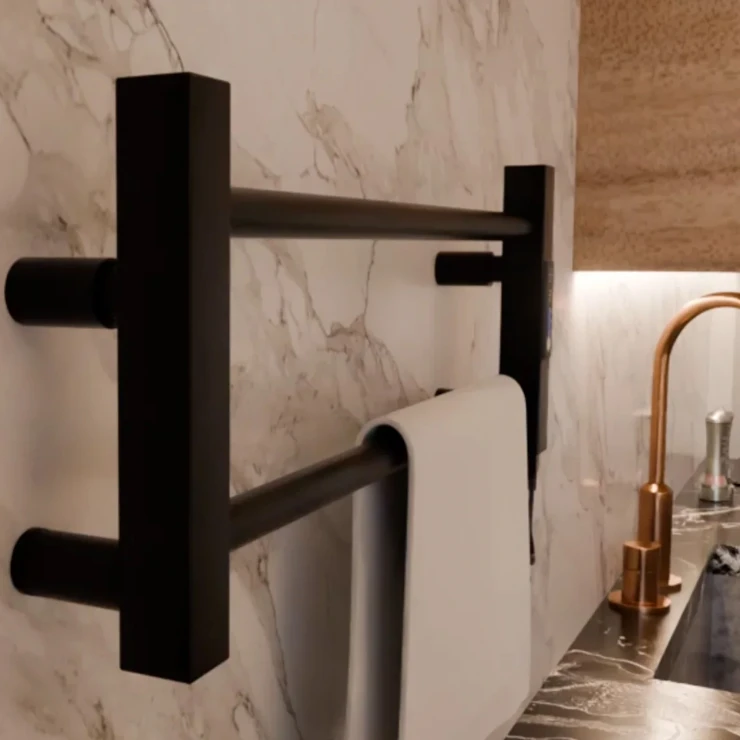 I tråd med globale trends inden for badeværelsesdesign præsenterer vi denne elektriske håndklædetørrer i mat sort udførelse. Et perfekt designvalg for kunder, der værdsætter industrielle farvetoner, minimalistisk æstetik og rene metalformer.