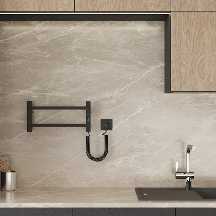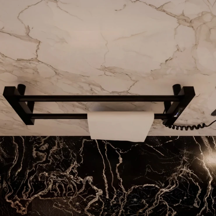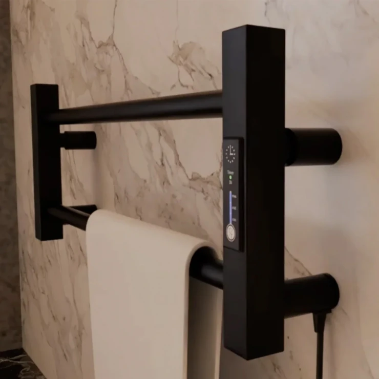 I tråd med globale trends inden for badeværelsesdesign præsenterer vi denne elektriske håndklædetørrer i mat sort udførelse. Et perfekt designvalg for kunder, der værdsætter industrielle farvetoner, minimalistisk æstetik og rene metalformer.