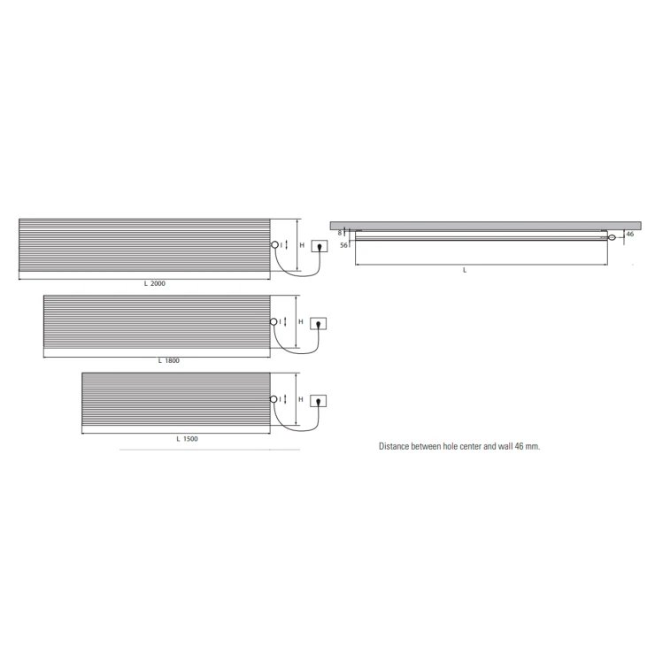 • - Avstånd mellan hålcentrum och vägg: 46 mm