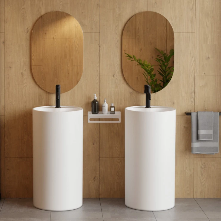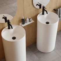Handfat tillverkade med Solid Surface-teknologi kännetecknas av en extremt slät yta, och materialets egenskaper möjliggör skapandet av produkter i valfri form eller med tunna väggar, samtidigt som hållbarhet och estetik bibehålls. En noggrant utvecklad blandning av hartser och naturliga mineraler används för att producera enhetliga gjutningar utan skarvar eller fogar.