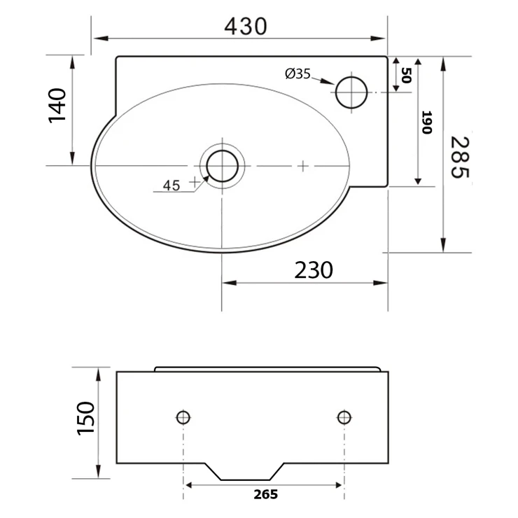 Tvättställ Florenne Vit Blank 43x29 cm Höger