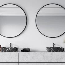 Oavsett om du föredrar rund, oval eller rektangulär form, erbjuder dessa tvättställ en sofistikerad balans mellan modern skandinavisk estetik och naturlig steninspiration. Matcha gärna med hög blandare i svart, krom eller mässing för ett komplett och stilrent uttryck.