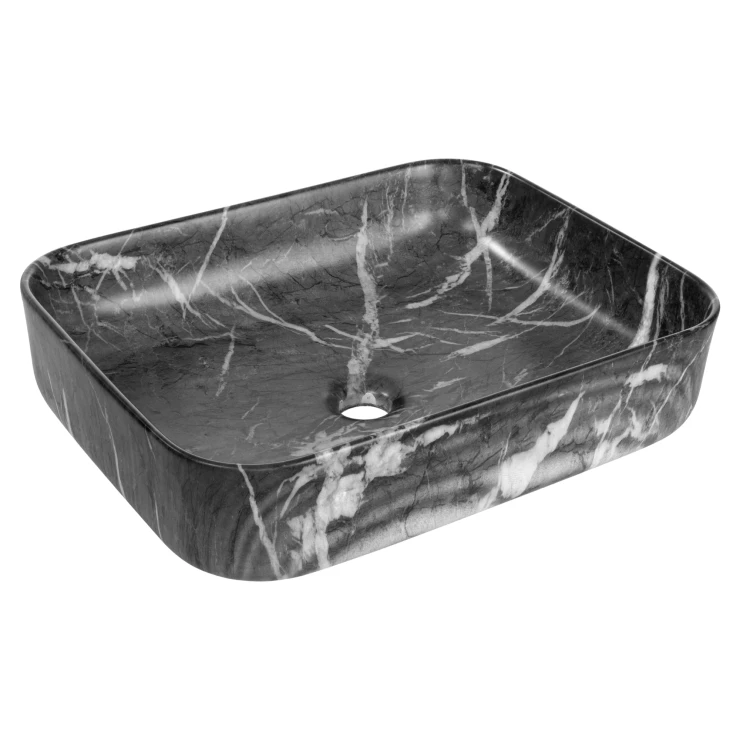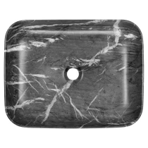 Elegant rektangulärt tvättställ i keramik med naturlig marmoreffekt som ger badrummet en tidlös och lyxig känsla. Det 11 cm djupa tvättstället erbjuder bekväm användning och en modern design som passar de flesta bänkskivor. Lätt att rengöra och perfekt att kombinera med hög blandare.