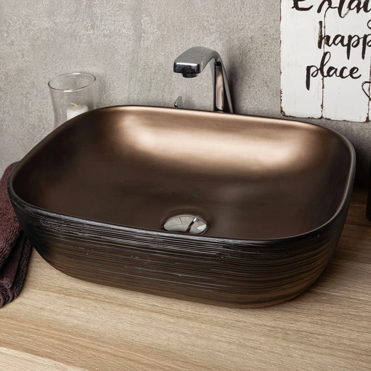 Tvättställ för bänkskiva 46 cm – brons/svart