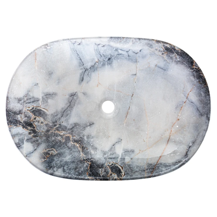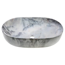 Tvättställ Noelle – Ovalt, Marmor Effekt Vit/Blågrå