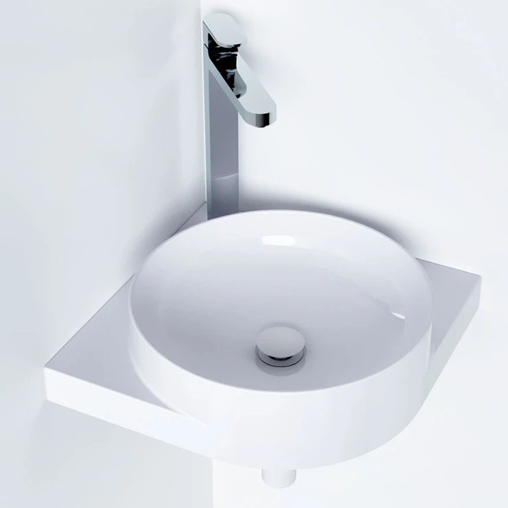 • -Tvättstället Yard 45 är tillverkat av högkvalitativ keramik och är avsett för installation på Yard 45 konsolen; tvättstället kan inte monteras på väggen självständigt. Tvättstället måste kombineras med en fast avloppsplugg, som förhindrar vattenöverflöde.
