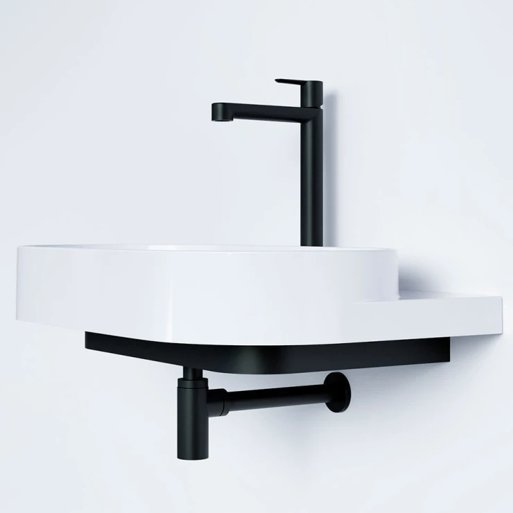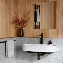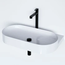 • -Stabilt stöd, inga möbler behövs: Yard installeras direkt på väggen med en stålkonsol, vilket eliminerar behovet av ytterligare möbler. Konsolen matchar tvättställets form och förbättrar helhetsintrycket.