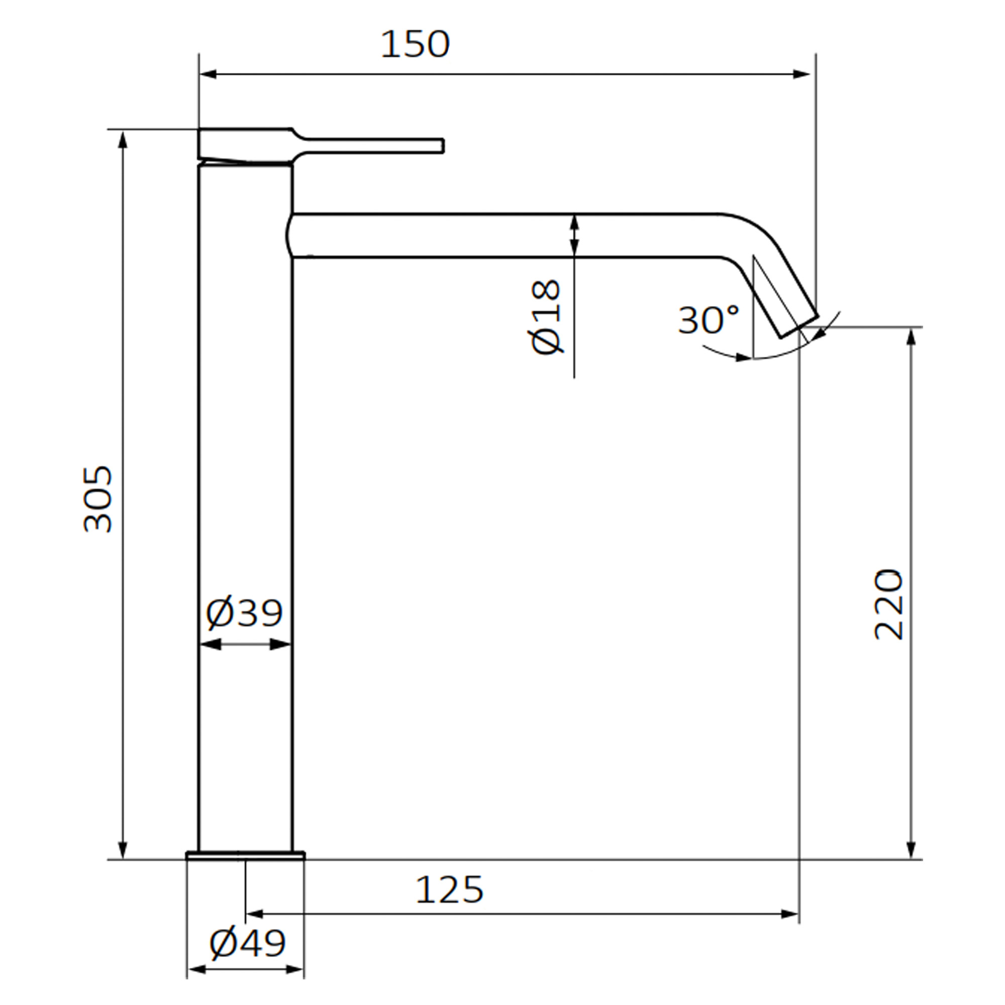 Håndvaskarmatur Carenza 31 cm Metal Sort Mat Høj
