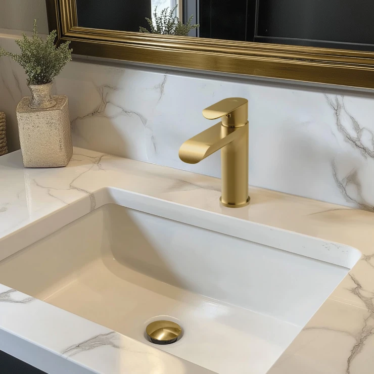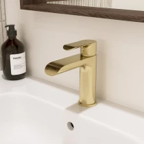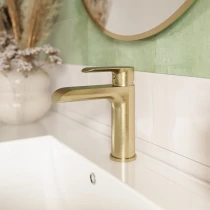 Lore-armaturen i mat guld løfter ethvert badeværelse med sit sofistikerede og luksuriøse design. Med en eksklusiv PVD-overfladebehandling bevarer den sin rige farve og høje holdbarhed over tid.