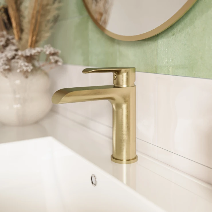 Lore-armaturen i mat guld løfter ethvert badeværelse med sit sofistikerede og luksuriøse design. Med en eksklusiv PVD-overfladebehandling bevarer den sin rige farve og høje holdbarhed over tid.