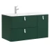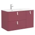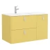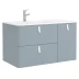 Kollektionen finns i tre varianter av tvättställsskåp: 60 cm med två lådor, 90 cm med dörr till höger samt 90 cm med dörr till vänster.