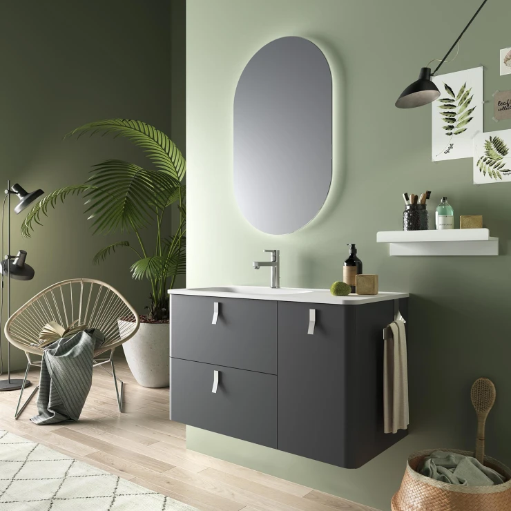 Tvättställsskåp Avrel Antracit Matt Höger 90 cm med Handfat Vit Matt