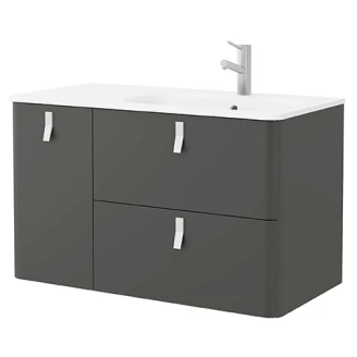 Tvättställsskåp Avrel Antracit Matt Vänster 90 cm med Handfat Vit Matt
