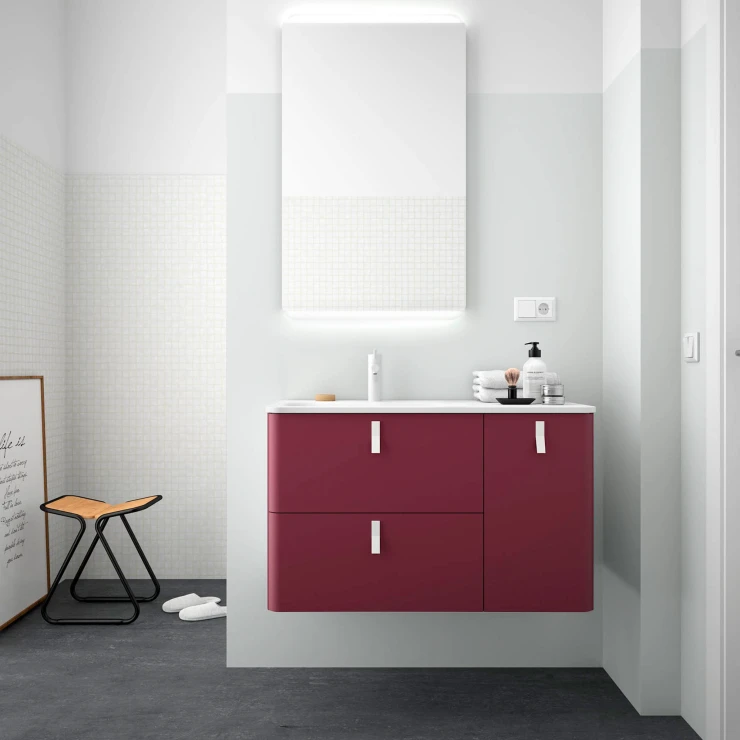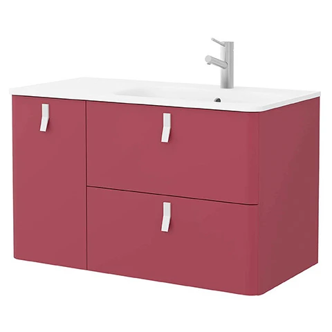 Tvättställsskåp Avrel Granat Matt Vänster 90 cm med Handfat Vit Matt