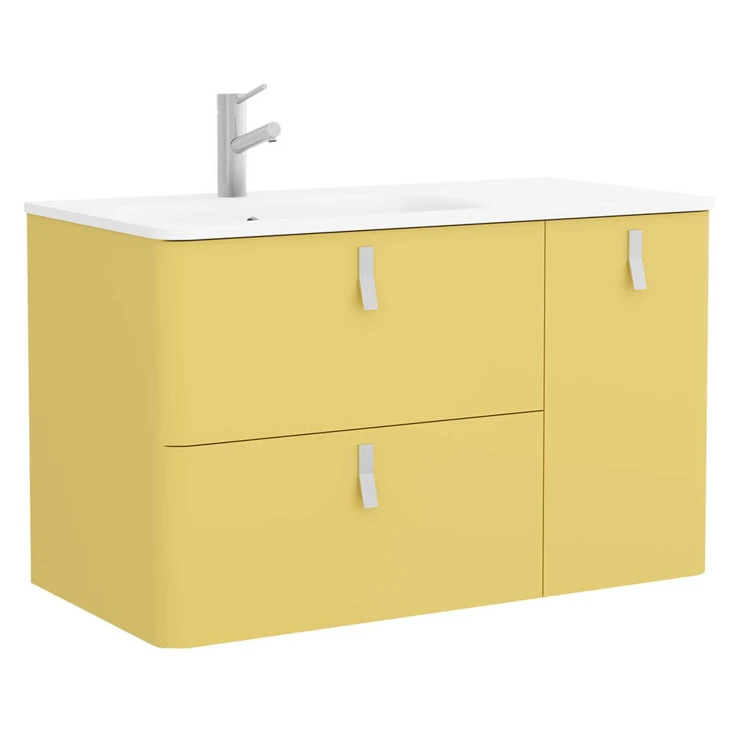 Tvättställsskåp Avrel Halmgul Matt Höger 90 cm med Handfat Vit Matt