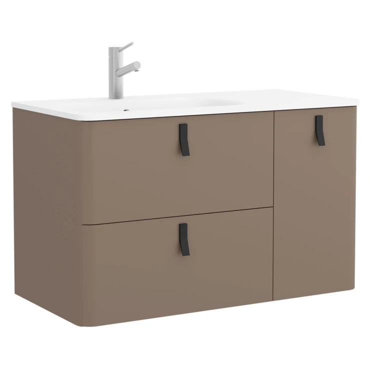 Tvättställsskåp Avrel Höger Taupe Matt 90 cm med Handfat Vit Matt & Handtagen Svart