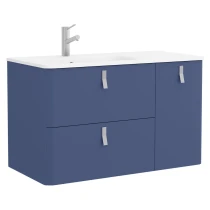 Tvättställsskåp Avrel Höger Havsblå Matt 90 cm med Handfat Vit Matt & Handtagen Krom