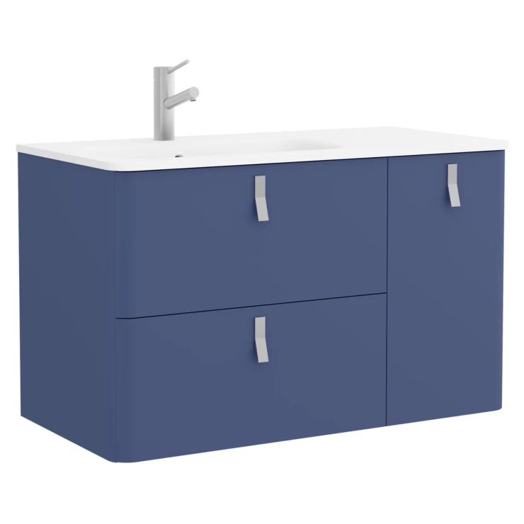 Håndvaskskab Avrel Højre Havblå Mat 90 cm med Vask Hvid Mat & Håndtag Krom