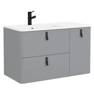 Tvättställsskåp Avrel Rökgrå Matt Höger 90 cm med Handfat Vit Matt