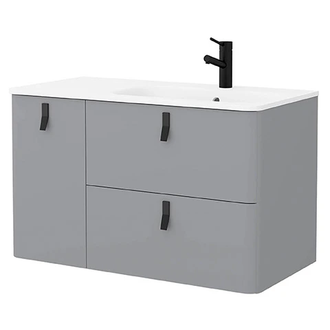 Håndvaskskab Avrel Røggrå Mat Venstre 90 cm med Vask Hvid Mat