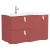 Kollektionen finns i tre varianter av tvättställsskåp: 60 cm med två lådor, 90 cm med dörr till höger samt 90 cm med dörr till vänster.