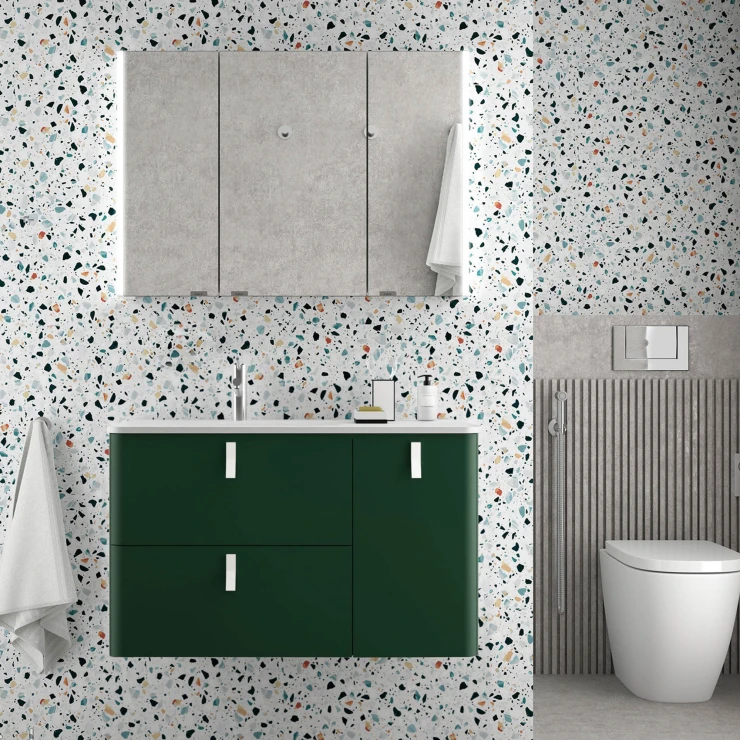 Håndvaskskab Avrel Royalgrøn Mat Højre 90 cm med Vask Hvid Mat