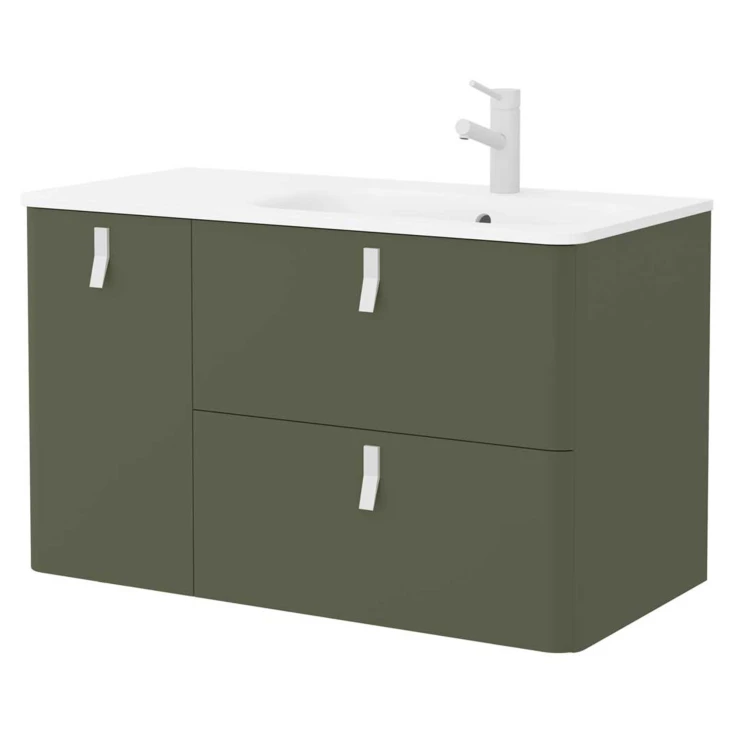 Tvättställsskåp Avrel Skogsgrön Matt Vänster 90 cm med Handfat Vit Matt