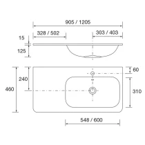• Observera: Tvättställsblandare, bottenventil och vattenlås ingår ej.