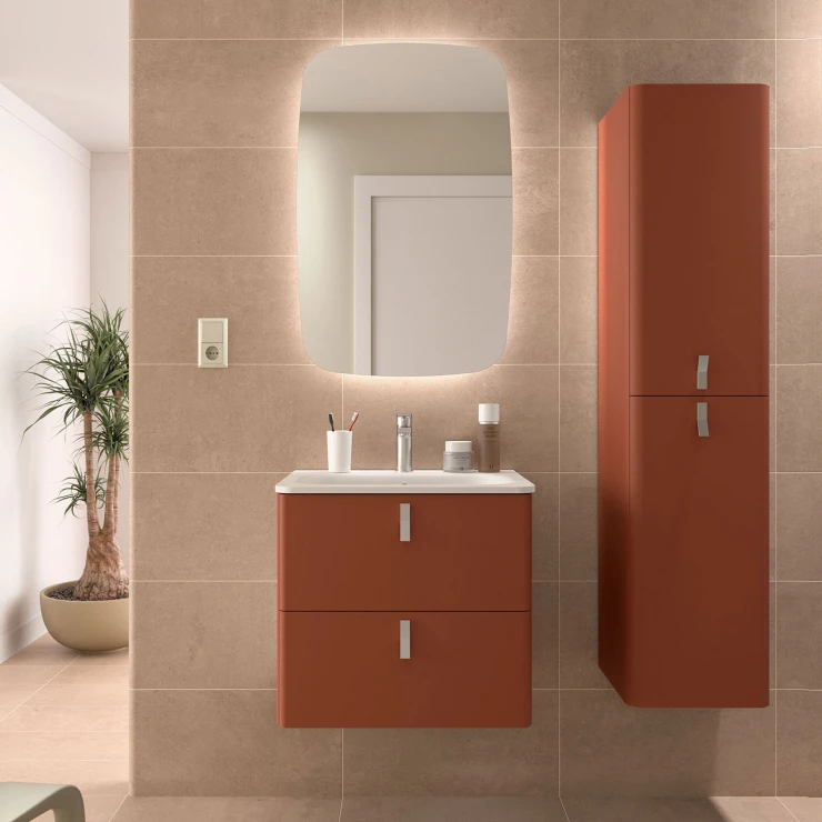 Håndvaskskab Avrel Terrakotta Mat 60 cm med Vask Hvid Mat & Håndtag Krom