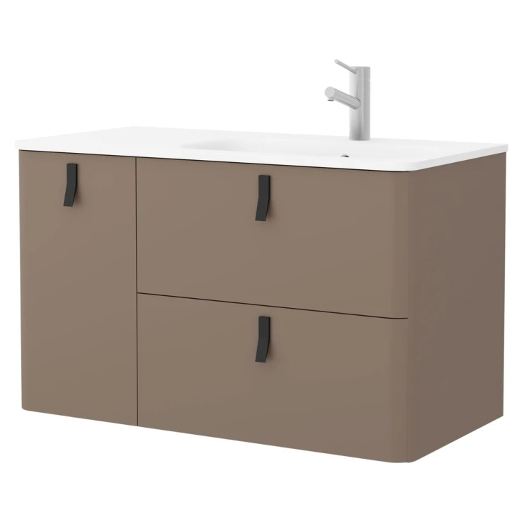 Tvättställsskåp Avrel Vänster Taupe Matt 90 cm med Handfat Vit Matt & Handtagen Svart